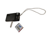 - has a strap and a battery inside of it , some scratches on the screen. No charger dock for battery to test.