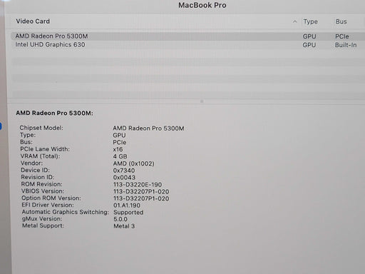 era.caCondition: UsedGPU: AMD Radeon Pro 5300M 4GB Hard Drive Wiped & Fully Factory Reset Power adapter not included May have light scratches Battery...