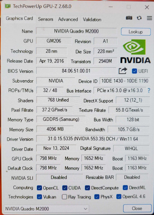 Original price $65.00 - Original price $65.00Original price $65.00$65.00$65.00 - $65.00Current price $65.00| /NVIDIA Quadro M2000 4GB GDDR5 Graphics Card 4x Display Port