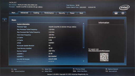 Intel NUC NUC10FNH, i5-10210U 1.60GHz, 16GB DDR4, 1TB SSD