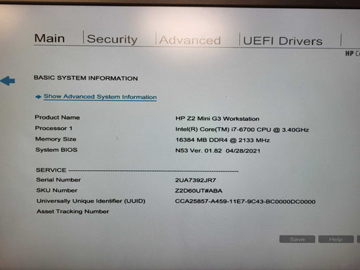 HP Z2 Mini G3 Workstation Core i7-6700 3.40 GHz 16GB DDR4 256GB NVme
